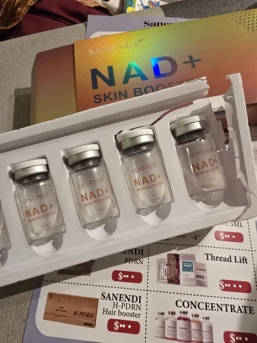 NAD+ ampoules are an advanced skincare solution, designed to enhance the revitalization and overall quality of the skin. Formulated to improve cellular function, they contribute to skin repair, radiance, and renewal.
